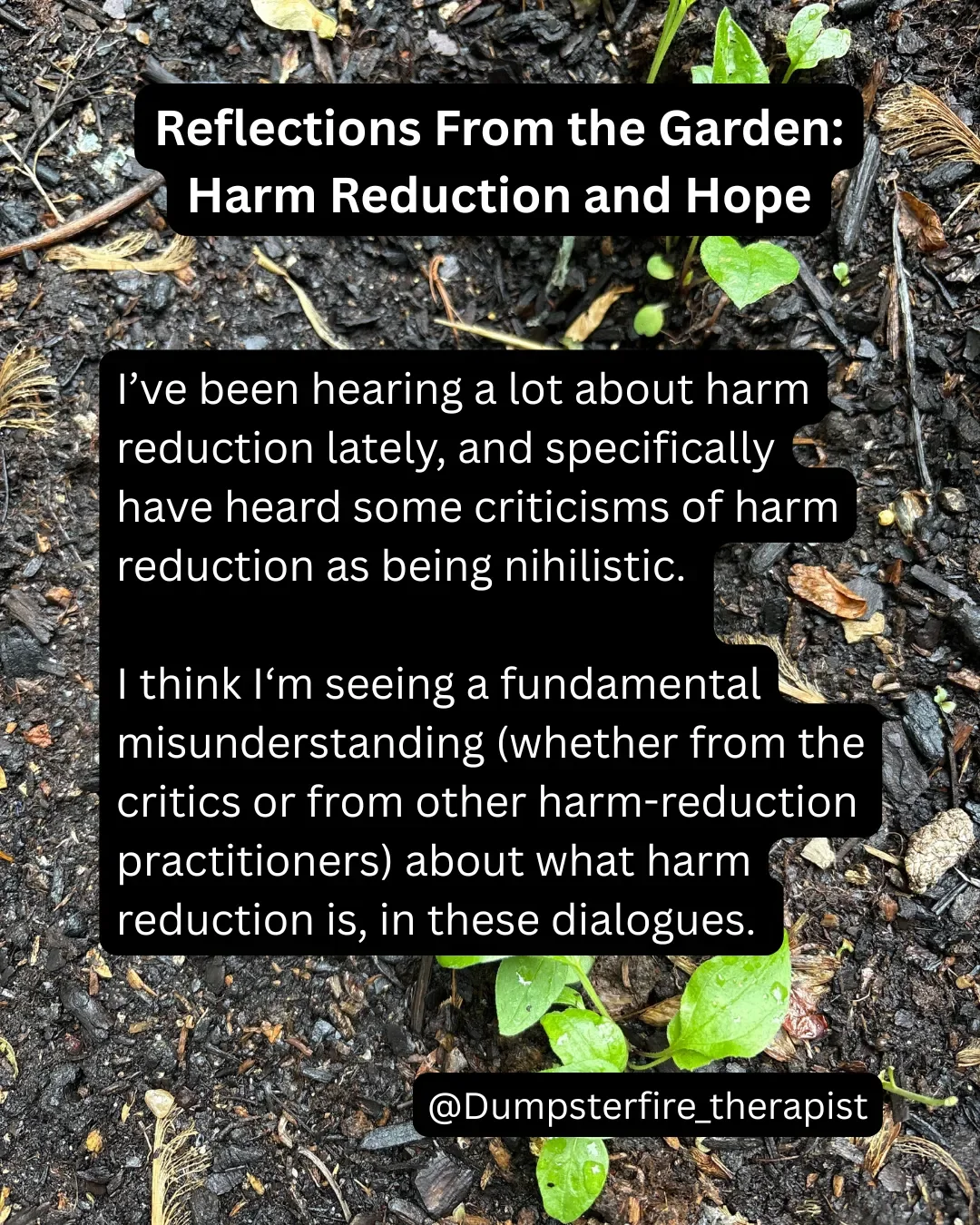 Harm reduction is not about hopelessness. It’s not nihilism. It is–it must be–the opposite. Harm reduction requires us to hold radical hope for the future. It requires us to envision a world where our clients (and our selves) can heal, not so that we can be free in the future, but because we deserve to be free, right now.